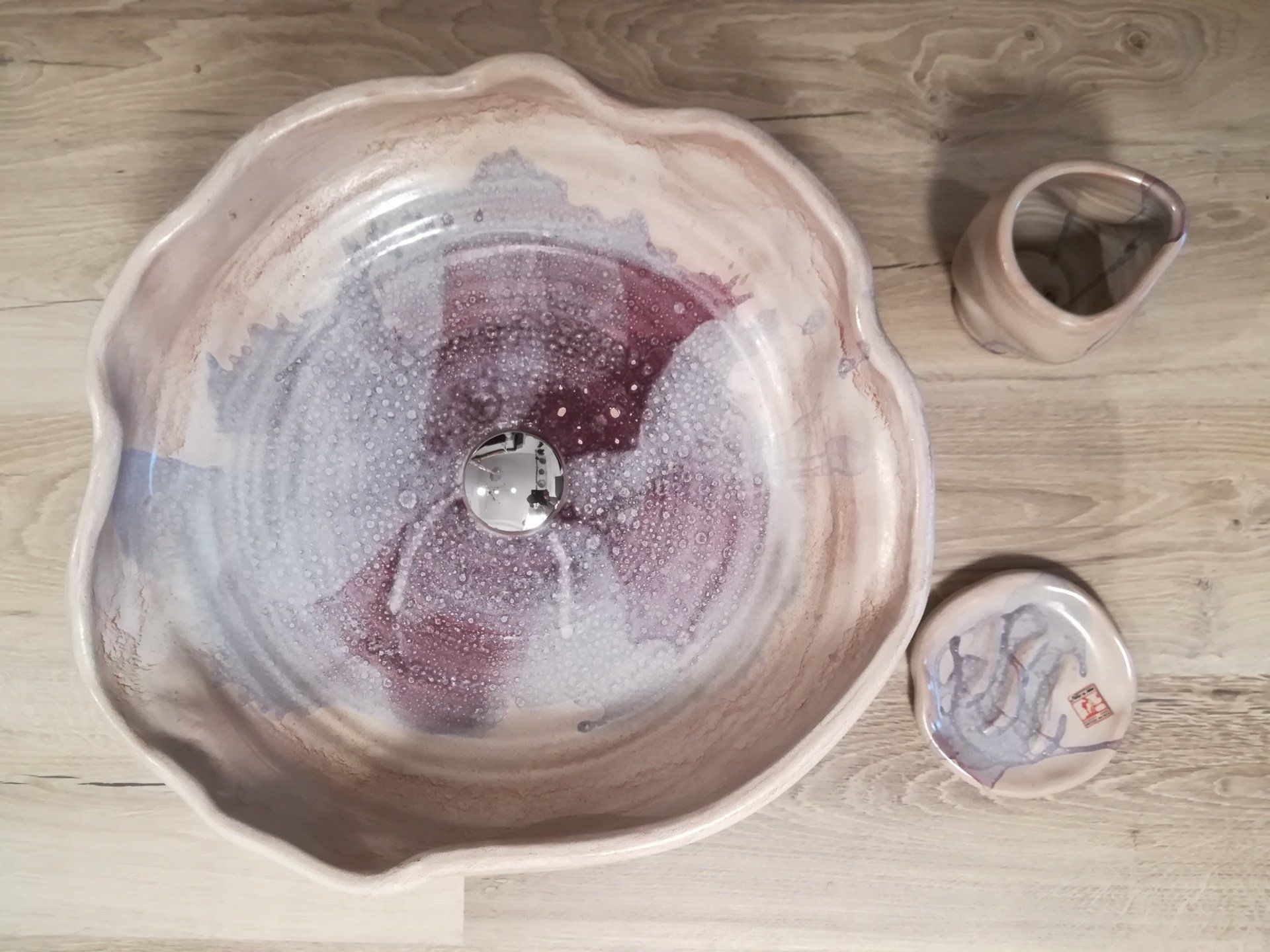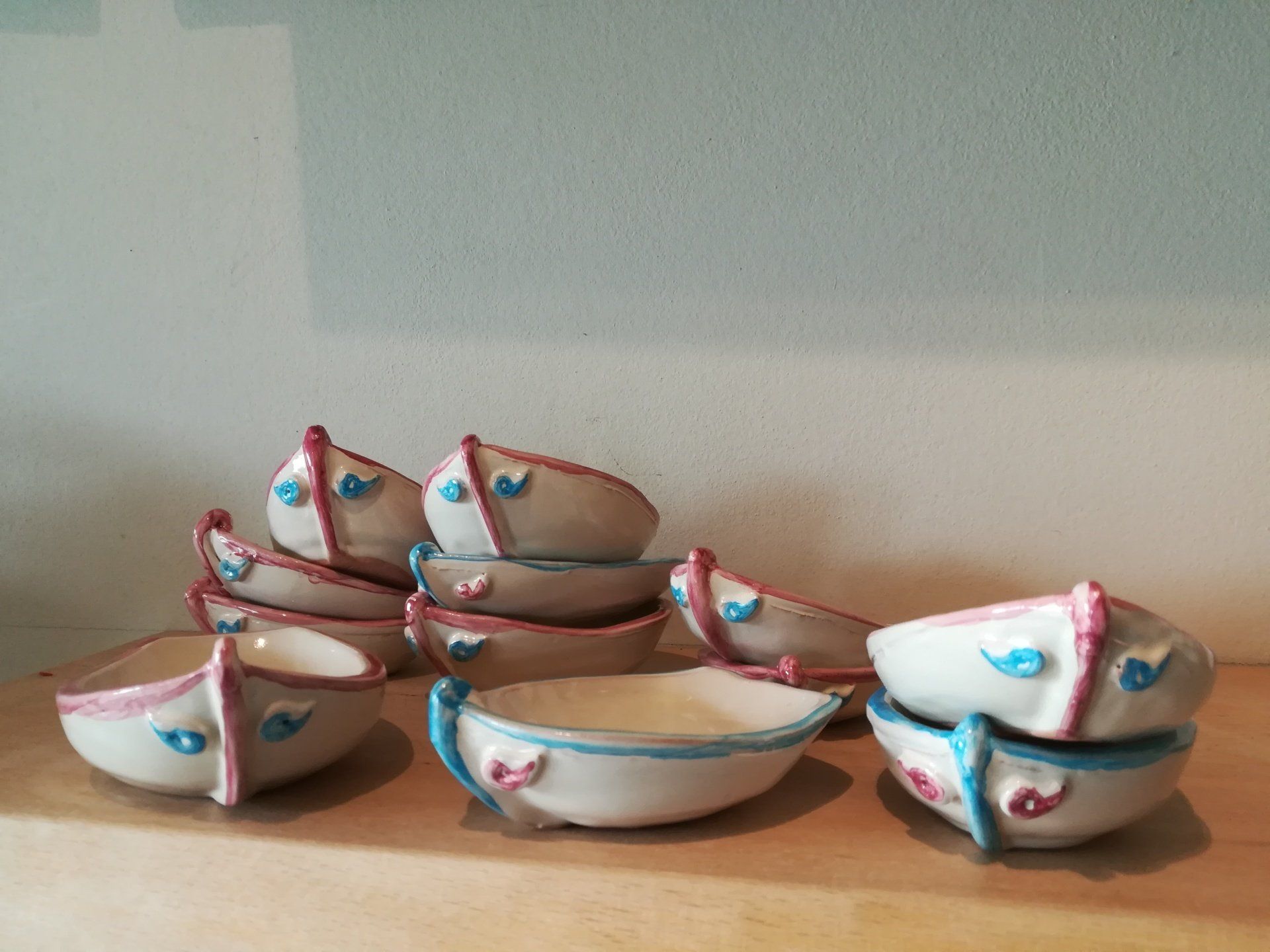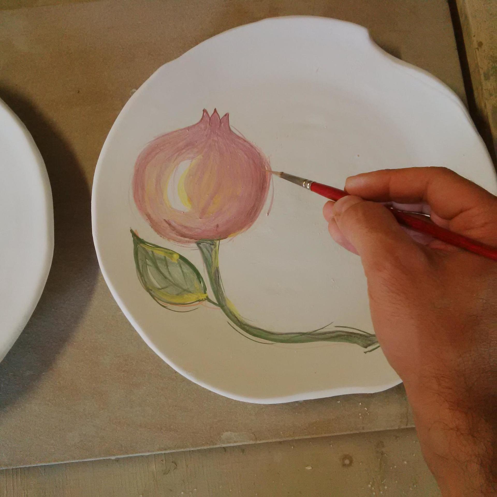 Quindi ogni forma è foggiata al tornio e completata a mano.